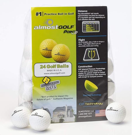 The almostGOLF ball travels approximately one-third the distance of a regulation golf ball.
