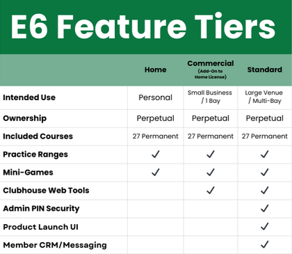 Join the growing network of connected golfers and gain access to new Courses, Mini Games, Skills Combines, Training Aids, and more with E6 CONNECT! This is the most advanced golf software ever made. This proprietary gaming engine has been built to scale and offers cross-platform virtual golf competition. Now, the industry standard E6 experience is available on more platforms for more devices.