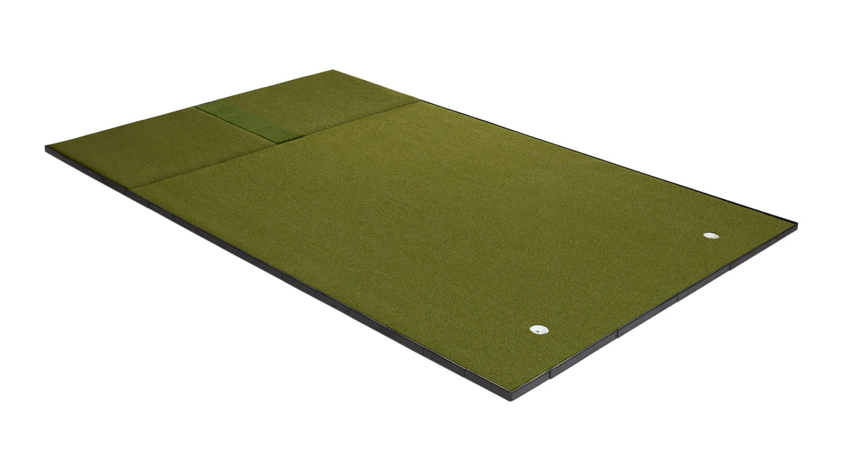 Perfect your game one swing at a time with Fiberbuilt’s 10’ x 16’ Center-Hitting Combo mat, which combines our legendary Studio Mats with our perfect-roll putting greens. Now, you only need one mat to practice every stroke. Hitting surfaces use Fiberbuilt Grass for realistic launch conditions and injury-free practice, and accommodate both right- and left-handed golfers. This oversized mat is ideal for either outdoor practice, or indoor simulators.