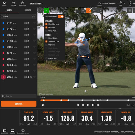 | Club Data | Club Speed | Speed, Dynamic Loft, Club Path, Face Angle, Face to Path, Impact Height, and Impact Offset |