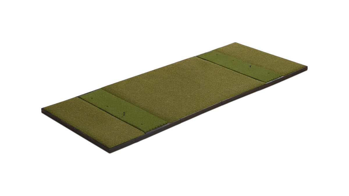 Keep your game under par, and your practice area oversized with the Fiberbuilt 10’x4’ Double-Hitting Studio Mat. Our 10’ x 4’ Double-Hitting Studio Mat, accommodating both right- and left-handed players, is designed to meet your exacting specifications, yielding realistic ball flight numbers. The authentic Fiberbuilt Grass hitting section is ultra-durable and proven to perform exactly like real fairway grass. Hit down and through, and avoid turf shock to prevent injuries. Even better, it comes with our 300,000 shot guarantee.