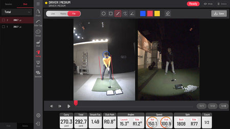 Utilizing two high-speed cameras and infrared light, Dimple Optix precisely captures ball data. Simultaneously, Club Optix measures and presents club metrics, complemented by video and photos showcasing the club's motion through the impact zone.